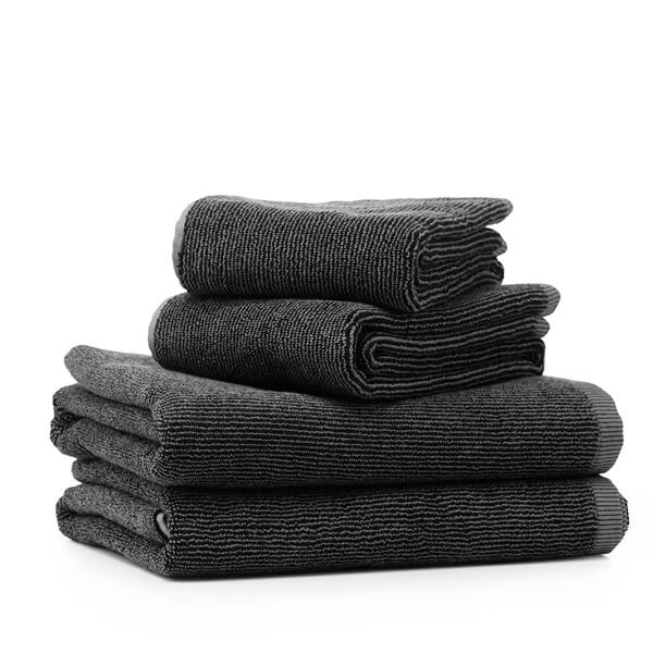 Vipp-Tücher bestehen aus reiner organischer Baumwolle, um eine optimale Qualität, Wasseraufnahme und Weichheit zu erreichen. Die Tücher sind mit einem festen Kautschukband ausgestattet und in drei Versionen erhältlich – Gästetuch, Handtuch und Badetuch.